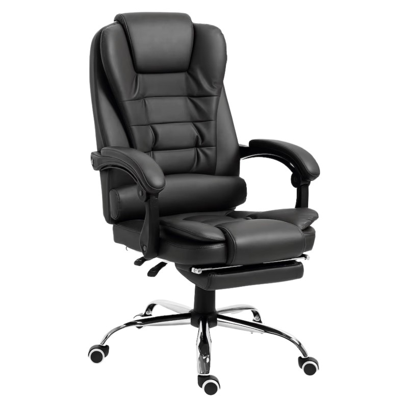 Atención personalizadaConvierte tu escritorio en un sitio donde apetece quedarse con la silla de oficina Comde con reposapiés. Está pensada para jornadas largas y para esos momentos en los que el cuerpo te pide un “mini descanso” sin tener que levantarte: el reposapiés integrado te permite estirar las piernas, cambiar de postura y volver a la carga con mejor sensación. Su estructura de metal aporta estabilidad para el uso diario, y el revestimiento en polipiel suma un tacto agradable para trabajar con más confort. En color negro, encaja fácil en oficina, despacho en casa o zona de estudio, aportando un estilo sobrio que combina con casi todo. Si buscas una silla de oficina negra con reposapiés práctica y pensada para el día a día, la Comde te lo pone fácil. Añádela a tu espacio de trabajo y dale a tus rutinas un extra de comodidad.