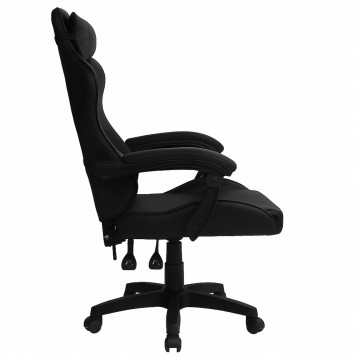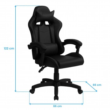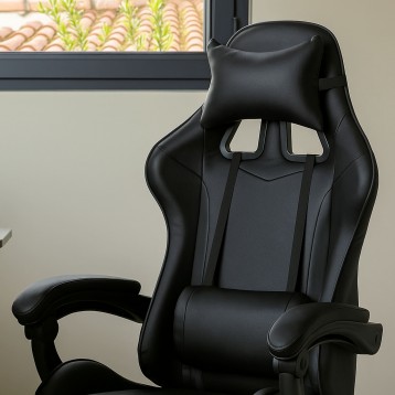 Atención personalizadaVive una experiencia de juego única con la silla gaming negra Koe, diseñada específicamente para ofrecer confort en largas sesiones. Esta silla gamer ergonómica se adapta a tus necesidades gracias a su capacidad de reclinación de hasta 135° y su altura regulable mediante un eficiente pistón de gas. Además, garantiza la versatilidad que buscas con su función de balanceo, permitiéndote un movimiento suave y dinámico durante tus momentos de juego o trabajo. El diseño de la silla Koe incluye cojines lumbares y cervicales, proporcionándote el soporte añadido necesario para cuidar tu postura. La base robusta con ruedas 360° asegura una movilidad excepcional por toda la habitación, mientras que los reposabrazos acolchados incrementan la comodidad, permitiéndote mantener una óptima posición de descanso. Fabricada con materiales de polipiel y metal en un elegante tono negro, esta silla combina un estilo moderno con una estructura sólida, ofreciendo un espacio de juego cómodo y estéticamente atractivo. ¡Añade esta silla a tu carrito!