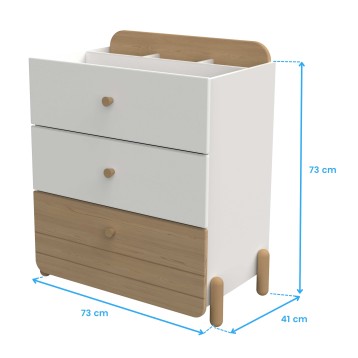 Atención personalizadaDescubre la magia del orden y el diseño en un solo mueble: la cómoda juvenil Edaj, creada pensando en el dinamismo y la frescura de los más peques. Su estructura está fabricada en melamina y cuenta con tres cajones que te ofrecen el espacio perfecto para guardar la ropa o accesorios de manera organizada y siempre a mano. Además, los cuatro compartimentos superiores son ideales para libros, dispositivos o pequeños objetos que necesites tener a la vista. Su combinación de color roble y blanco mate, aporta un toque cálido, capaz de integrarse con la mayoría de estilos de dormitorio. Las cuatro patas de madera no solo aseguran una estabilidad óptima, sino que también aportan un detalle natural. Su diseño con bordes redondeados están pensados para la seguridad de los peques sin perder el encanto del mueble. Es la fusión perfecta entre practicidad y estética. ¡Renueva tu espacio con la cómoda juvenil Edaj y añádela al carrito!