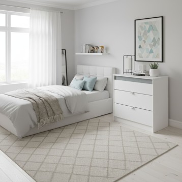 Atención personalizadaRefresca el dormitorio con la cómoda Germain . Este mueble no solo ofrece una solución de almacenamiento eficiente, sino que también añade un toque de elegancia moderna al espacio. Los 3 cajones proporcionan un espacio organizado para guardar ropa, accesorios y otros artículos personales, manteniendo la habitación ordenada y despejada. Fabricada con melamina con acabado en color blanco. Su diseño versátil y contemporáneo se adapta perfectamente a diversos estilos de decoración, desde los más tradicionales hasta los más vanguardistas. Ya sea para el dormitorio de los niños o un rincón de estudio, esta cómoda Germain se convierte en un complemento funcional y estilizado para cualquier espacio. Eleva la estética y la practicidad de tu hogar con este mueble ¿A que esperas? ¡Añádelo al carrito!
