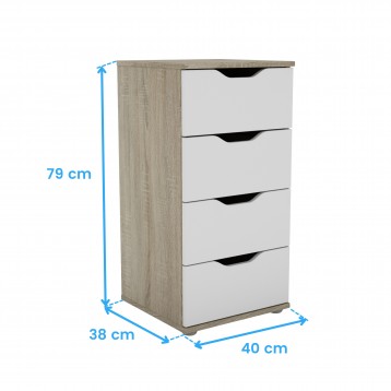 Atención personalizadaEl sinfonier Parc en blanco mate y roble sonoma es la opción perfecta para quienes buscan añadir practicidad y estilo a su dormitorio. A destacar, sus 4 cajones, equipados con tiradores fresados y guías metálicas de rodillos, están diseñados para ofrecer una apertura suave y un fácil acceso a tus pertenencias. El acabado en tonos blanco y roble Sonoma aporta una sensación de calidez y luminosidad, haciendo que este mueble se integre perfectamente en diversos estilos decorativos. Fabricado en melamina, garantiza un montaje estable y una apariencia moderna que complementa cualquier espacio. No esperes más para disfrutar de la combinación perfecta de diseño y utilidad. Incorpora este mueble de dormitorio a tu hogar y descubre cómo puede transformar un ambiente. ¡Añade al carrito!