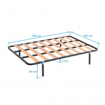 Atención personalizada¿Quieres que tu vieja estructura de cama se sustituya por un somier económico y resistente? ¡Tenemos lo que buscabas en un solo clic! Este modelo, fabricado con tubos de metal en color negro y láminas de chopo (efecto madera), tienes las características que te hacen falta. Destaca por tener un refuerzo central (dos para medidas extra grandes), un tratamiento anticorrosión y anti-ruido ¿Qué más puedes pedir para algo tan útil y fácil de conseguir? El diseño va acompañado de un juego de cuatro patas cuadradas de 25 cm y baldas de 100x7 mm, para una mejor calidad de producto ¡Consíguelo, pruébalo y cuéntanos tu experiencia! ¿Serás capaz de sorprendernos? Si quieres más ideas para tu casa, entra en nuestra web y encuentra todos nuestros somieres baratos aquí ¿Vas a encontrar algo mejor? ¡Imposible!
