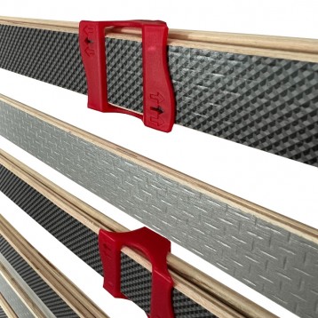 Láminas de haya vaporizada 38x8 mm con papel pintado antideslizante.